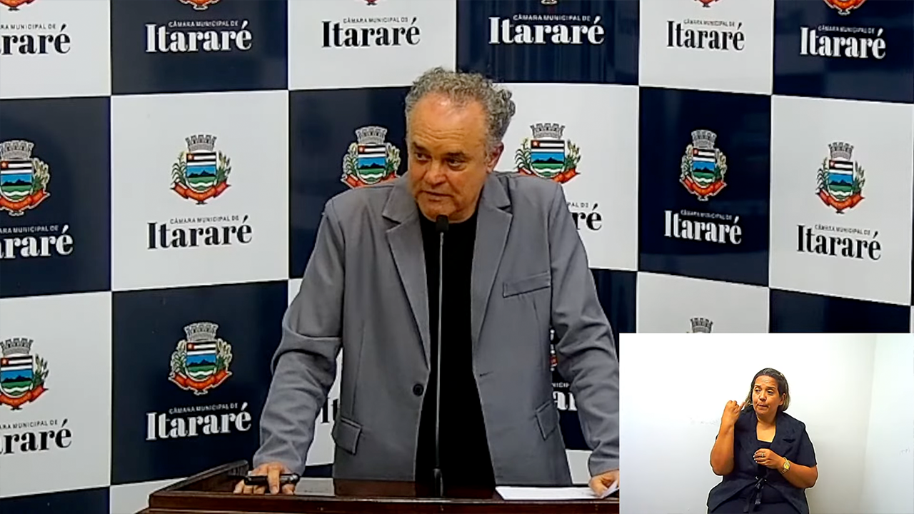 Vereador Sandro Macedo durante sessão da Câmara de Itararé em 15 de setembro de 2025.