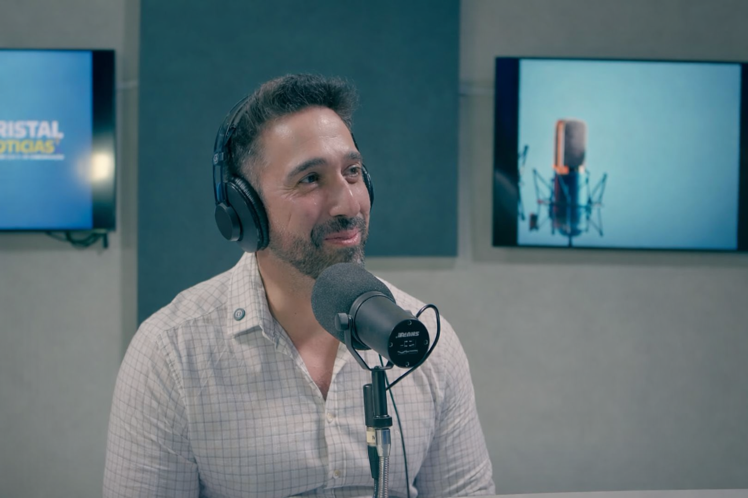 Prefeito João Fadel Filho durante entrevista à Rádio Cristal, imagem usada em matéria sobre contraste entre discurso de avanço e cobranças da população em Itararé.