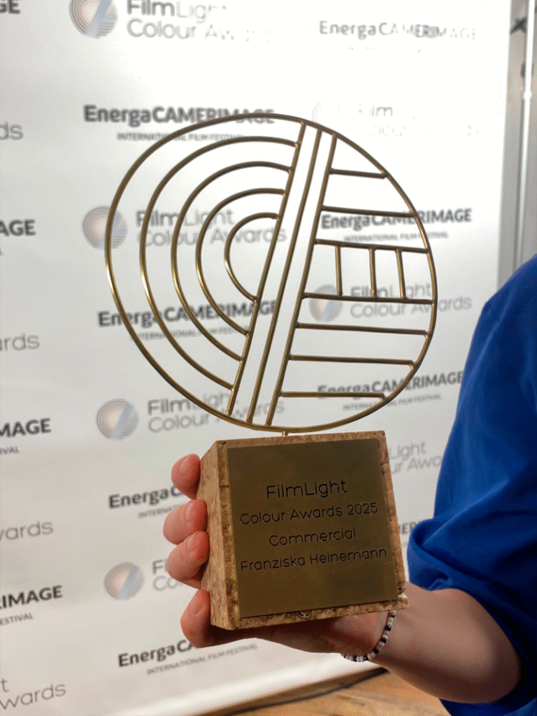 Matheo Fernandes recebe o prêmio de Melhor Comercial no FilmLight Colour Awards 2025, em Torún, Polônia.